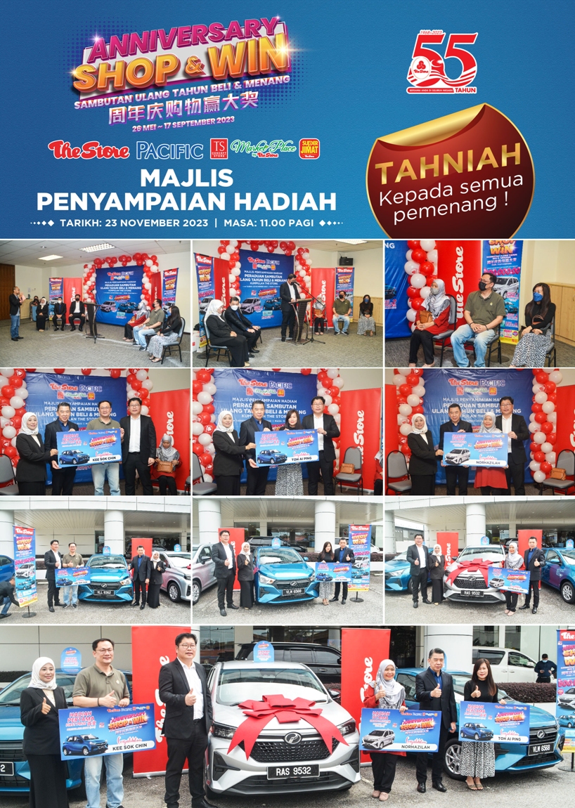 The Store Group's 55th Anniversary Celebration Contest – “Shop & Win” has commenced from 26th May until 17th September 2023. A total prizes worth RM500,000.00 to be won and customers stand a chance to win great prizes in the SHOP & WIN CONTEST!